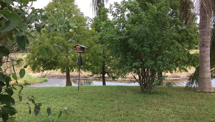 Because the squirrels kept eating all the seed in the feeder, we purchased a baffle, which is a long bell designed to keep the squirrels off the feeder.